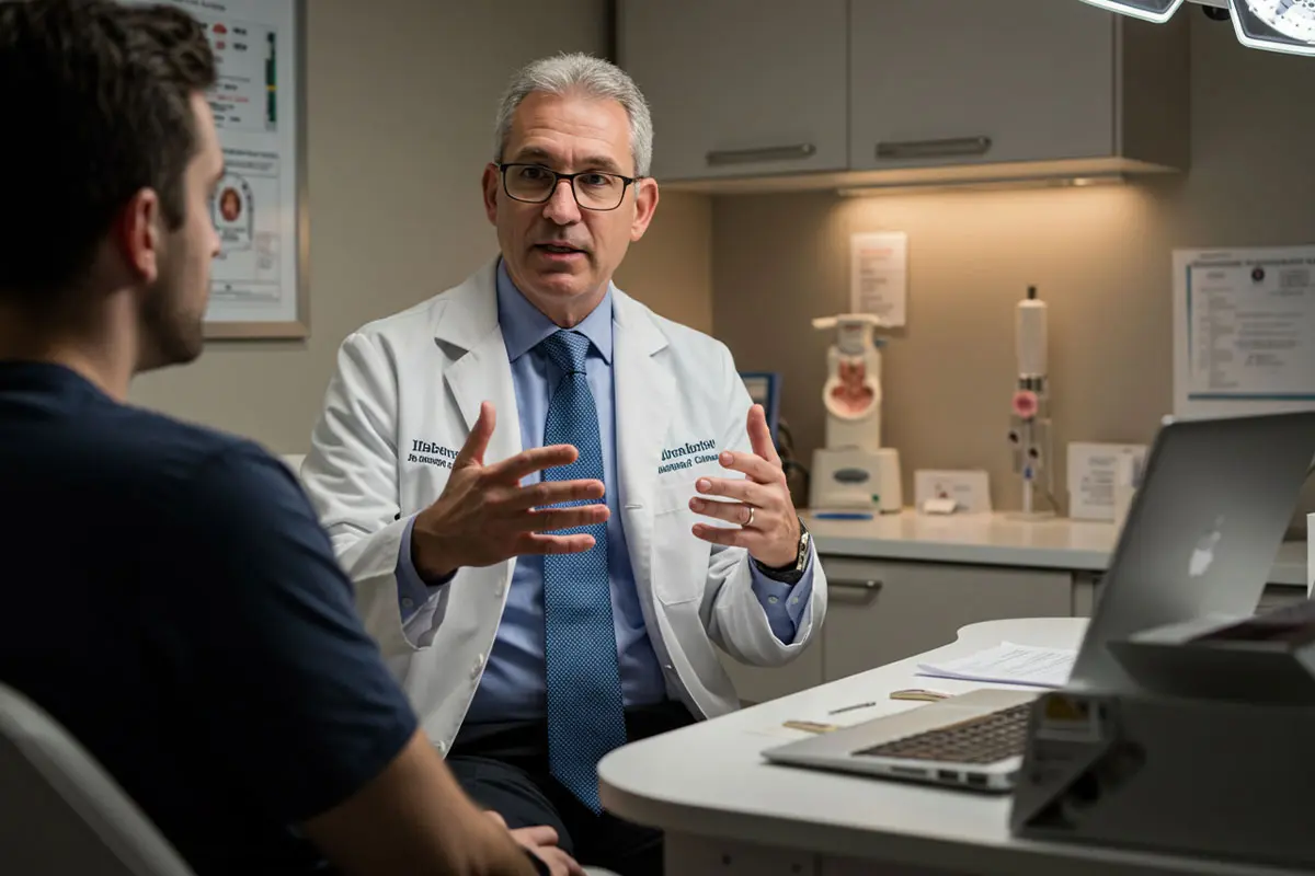 تتضمن زيارتك الأولى استشارة متعمقة مع طبيب الذكورة، وفحصاً سريرياً، وطلب التحاليل الأولية اللازمة (مثل تحليل السائل المنوي والهرمونات).