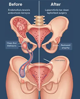 يستخدم جراحونا المهرة المنظار لاستئصال أنسجة بطانة الرحم المهاجرة وإزالة الالتصاقات والأكياس الدموية بدقة متناهية، مع الحفاظ على الأنسجة السليمة للمبيض والرحم.