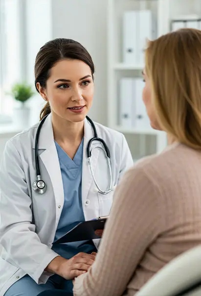 نحرص على أن تفهمي طبيعة حالتكِ بشكل كامل. نشرح لكِ تأثير الهرمونات، أهمية التغذية، وكيفية التعامل مع الأعراض المختلفة، لتكوني شريكاً فعالاً في رحلتكِ.